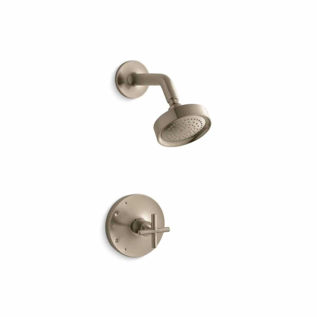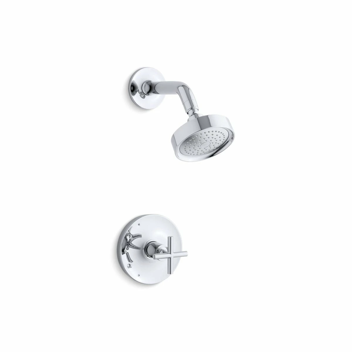 Purist faucets combine simple, architectural forms with sensual design lines. Featuring this modern, minimalist style, the Purist shower trim creates a sophisticated, unified look in your shower. This Purist shower trim includes a showerhead and a faceplate with cross handle. Pair this trim with a Rite-Temp pressure-balancing valve, which maintains your desired water temperature during pressure fluctuations.