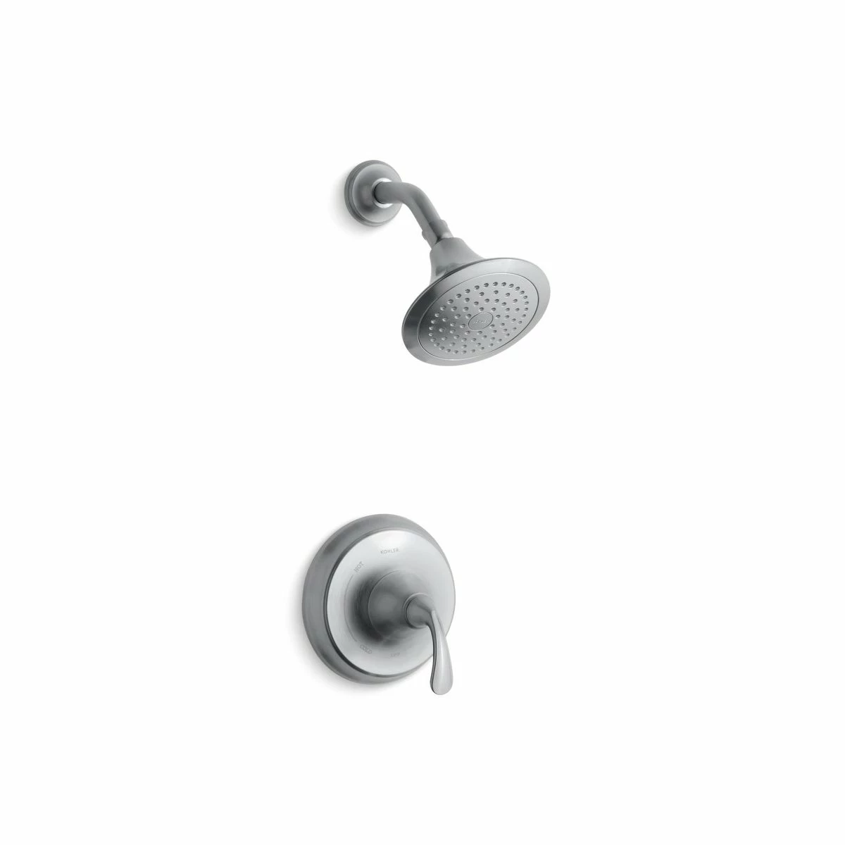 Forte faucets complement classic or contemporary spaces with their versatile design and effortless installation. This Forte shower trim includes a showerhead and a faceplate with sculpted lever handle. Pair this trim with a Rite-Temp pressure-balancing valve, which maintains your desired water temperature during pressure fluctuations.