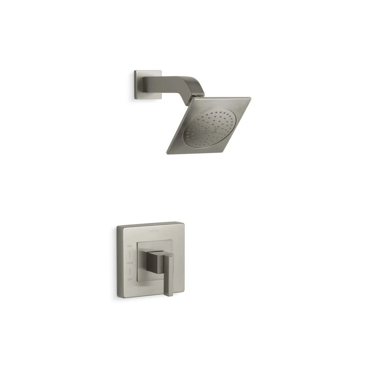 Combining a sleek profile with enhanced utility, Loure introduces a classically modern look to your bath decor. This shower trim includes a showerhead with Katalyst(R) air-induction spray. By infusing two liters of air per minute, Katalyst delivers a powerful, voluptuous spray that clings to the body with larger, fuller water drops. Pair this trim with a Rite-Temp pressure-balancing valve, which maintains your desired water temperature during pressure fluctuations.