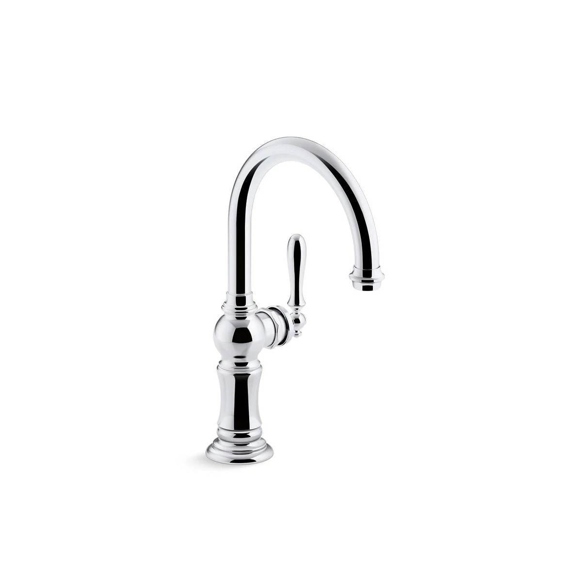The Artifacts faucet collection brings you classic designs reimagined in fresh new ways for various task areas of the kitchen. This Artifacts bar sink faucet displays vintage style with its high-arch swing spout and turned lever handle.