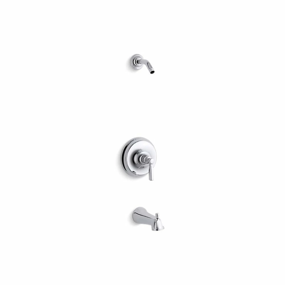 Inspired by early 1900s American design, Bancroft faucets combine vintage style with durable construction. This Bancroft bath and shower trim includes a faceplate with metal lever handle, a showerarm with flange, and a diverter spout with slip-fit connection. Pair this trim with a Rite-Temp pressure-balancing valve, which maintains your desired water temperature during pressure fluctuations.