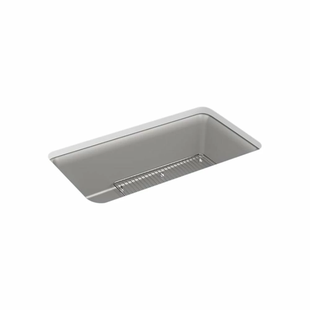 With soft French curves, the Cairn sink offers transitional style to suit contemporary and traditional kitchens alike. The Cairn sink is made of KOHLER Neoroc(R), a matte-finish composite material designed for extreme durability and unmatched beauty. Richly colored to complement any countertop, Neoroc resists scratches, stains, and fading and is highly heat- and impact-resistant. This sink includes a bottom sink rack to keep the surface looking new.