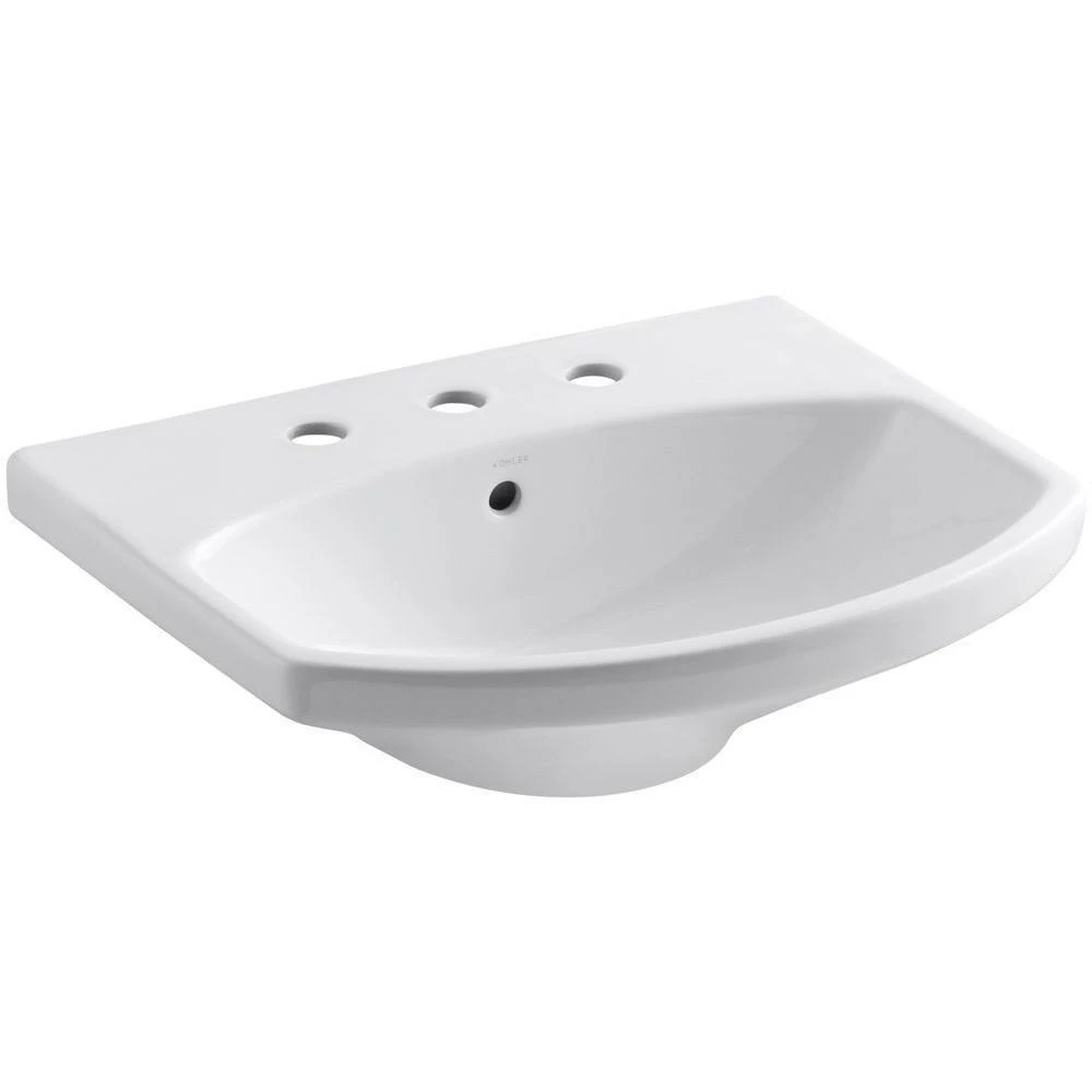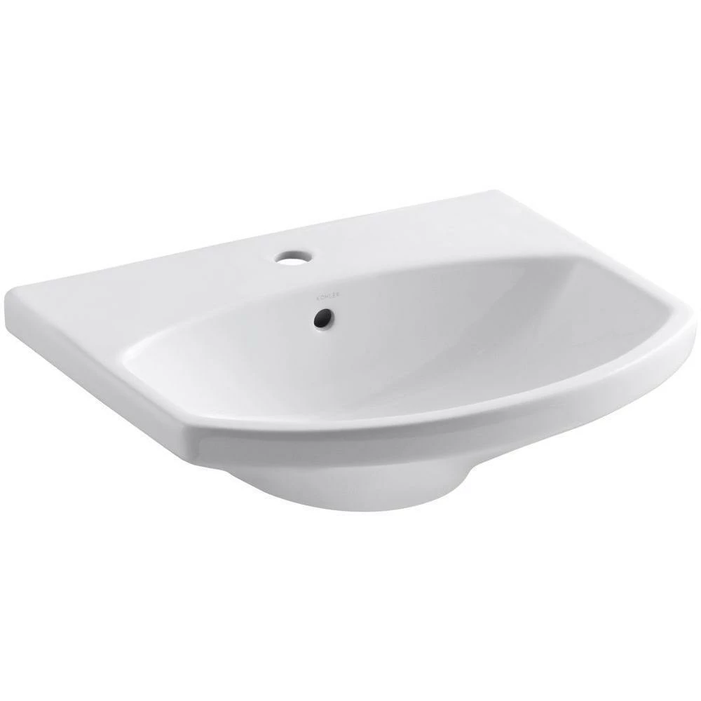 The Cimarron collection combines the best of traditional and contemporary design for a versatile look that complements a range of bathroom styles. Beveled edges and simple lines enhance the uniquely shaped basin. Pair it with the K-2364 pedestal for a perfect match.
