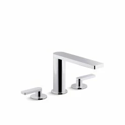 - Two-handle widespread faucet for 8″ – 16″ centers.