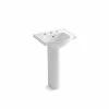 Reminiscent of a bygone era, the molded edges and subtle curves of the Devonshire pedestal sink add distinctive visual impact to your bathroom design.