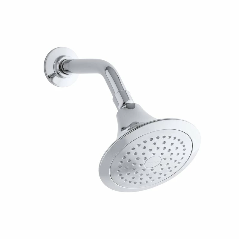 Brand Name: Kohler Sub Brand: Forte Finish: Chrome Number of Spray Settings: 1 settings Product Type: Showerhead Flow Rate: 2 gpm Showerhead Face Diameter: 5.5 in. Connection Size: 1/2 in. Packaging Type: Boxed 72 nozzles provide optimal coverage with soothing water delivery * 1/2″ NPT connection * Wall mount