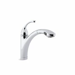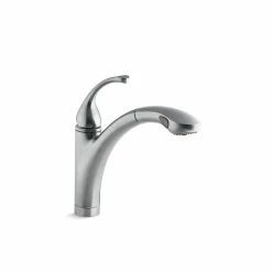 At home in classic or contemporary settings, this Forte sink faucet enhances any kitchen with style. The graceful arched swing spout is designed to reach over pots and pans, while the ergonomic lever handle makes operation easy.