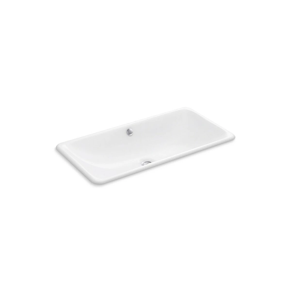 With its gently curved, organic shape, the Iron Plains sink combines distinctive style with the extreme durability, strength, and vintage soul of KOHLER enameled cast iron. This large trough-style sink offers two installation options – drop-in or under-mount – giving you flexibility for a range of bathroom configurations.