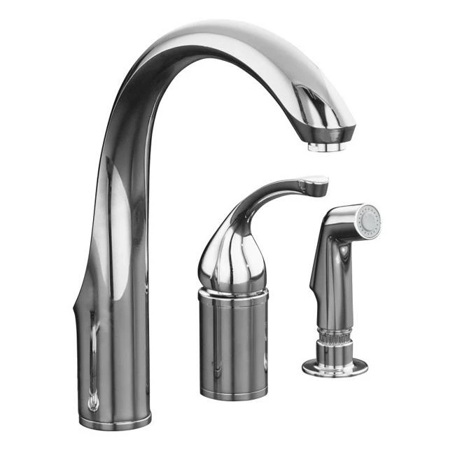 The Kohler K-10430-CP Polished Chrome Forte Single-Control Remote Valve Kitchen Sink Faucet With Sidespray And Lever Handle is designed to fashionably match your decor. The K-10430-CP features solid brass construction for durability and reliability.
