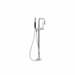 Purist faucets and accessories combine simple, architectural forms with sensual design lines. Featuring this modern, minimalist style, the Purist floor-standing filler trim complements a wide variety of freestanding baths. It brings sophistication to your bathroom with a defined profile and sleek, integrated handshower.