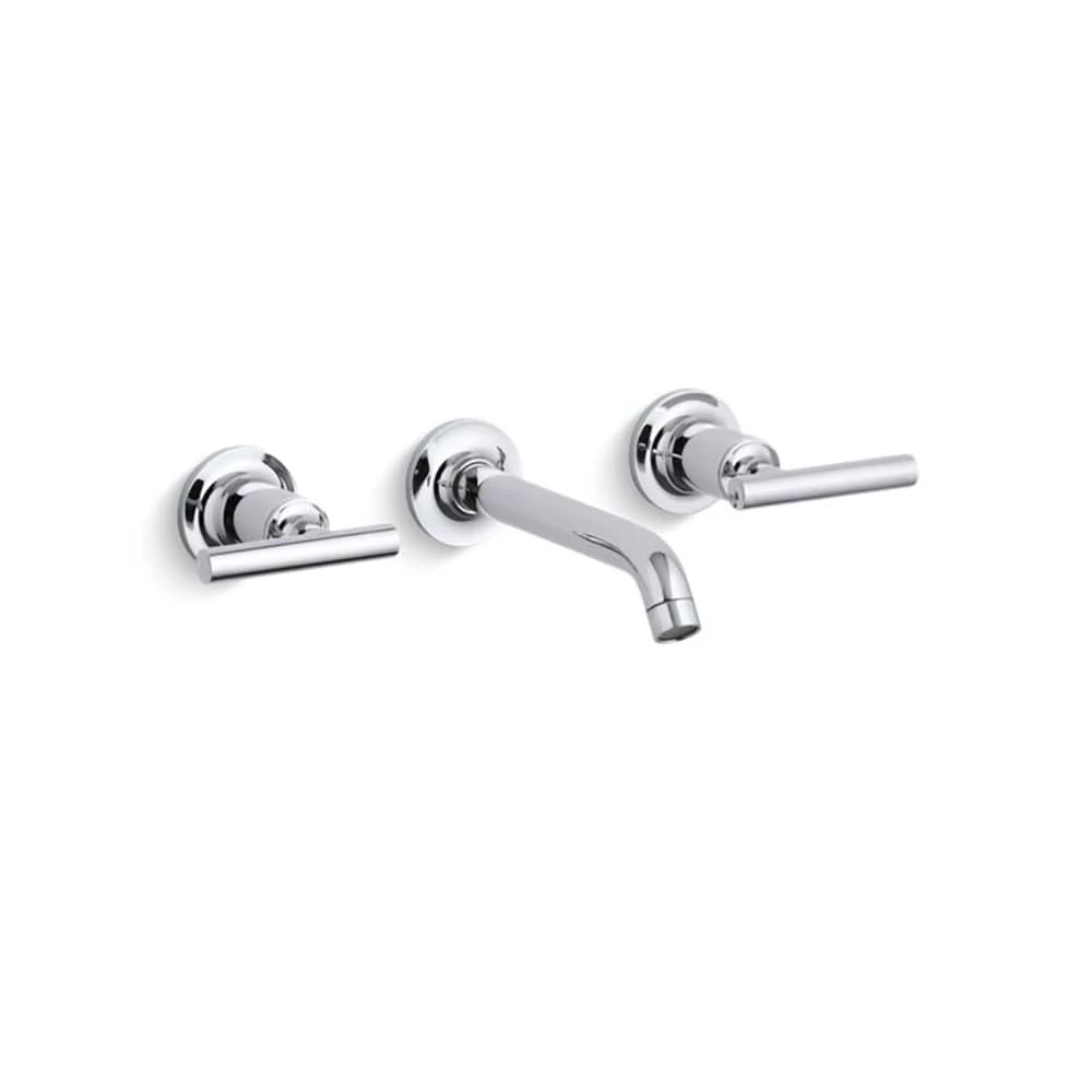 Capturing the style of minimalist design, Purist faucets deliver streamlined water control. This sink faucet trim features a 35-degree angled spout and lever handles for easy operation. The convenient wall-mount design provides a clutter-free countertop in your bath or powder room. When paired with a two-handle ceramic disc valve, this trim offers optimal performance.