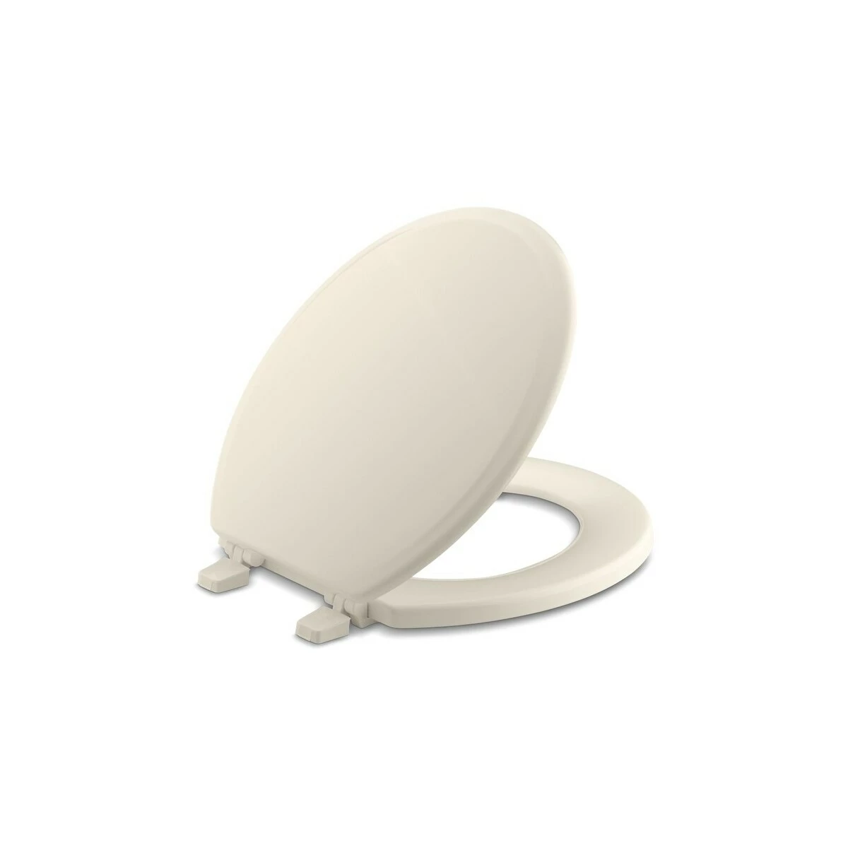 This Ridgewood toilet seat has simple lines complement a variety of traditional toilet designs. Made of compression-molded wood for a substantial look and feel, the seat fits most round-front one- or two-piece toilets.