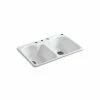 Introduce a modern, high-end look to your kitchen with the help of this sink faucet. The pull-down swing spout offers you with infinite maneuverability when cleaning or rinsing all sizes of dishes. Double hole mounting allows seamless integration of the faucet with your sink.