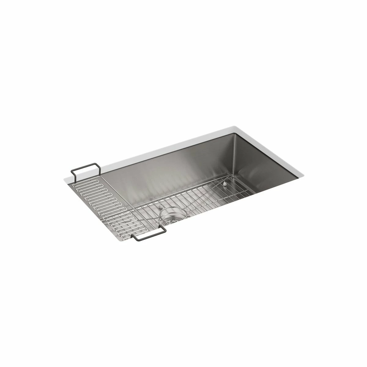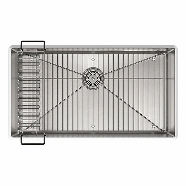 - Includes a sink bridge utility shelf with dishcloth bar and a bottom sink rack.