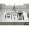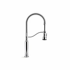 Spray water exactly where it’s needed using this Kohler semiprofessional kitchen sink faucet. The sprung design lets you direct the jet onto stubborn stains for prewashing, and the additional on-faucet lever ensures water is not constantly running. This sink faucet has ceramic valves for exceptional longevity.