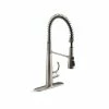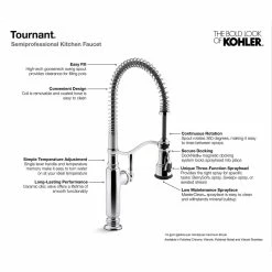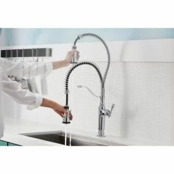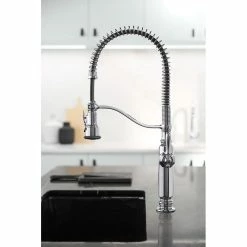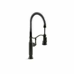 - Semiprofessional kitchen faucet with easy-clean coated hose and removable coil