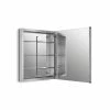 The Verdera medicine cabinet combines an elegant fit and finish with quick, easy installation. A built-in magnifying mirror on the inside of the door is vertically adjustable to accommodate users of varying heights. The door and interior are fully mirrored, and three adjustable glass shelves offer flexible storage. The slow-close door creates a quieter bath environment.